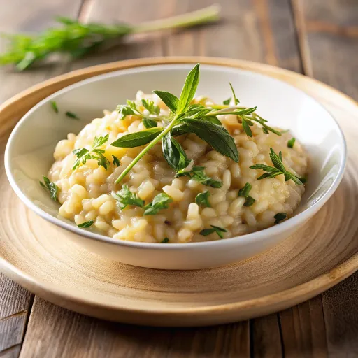 Kremowe risotto z ziaren orkiszu, wzbogacone delikatnymi kawałkami dyni i świeżo podsmażonym jarmużem.
